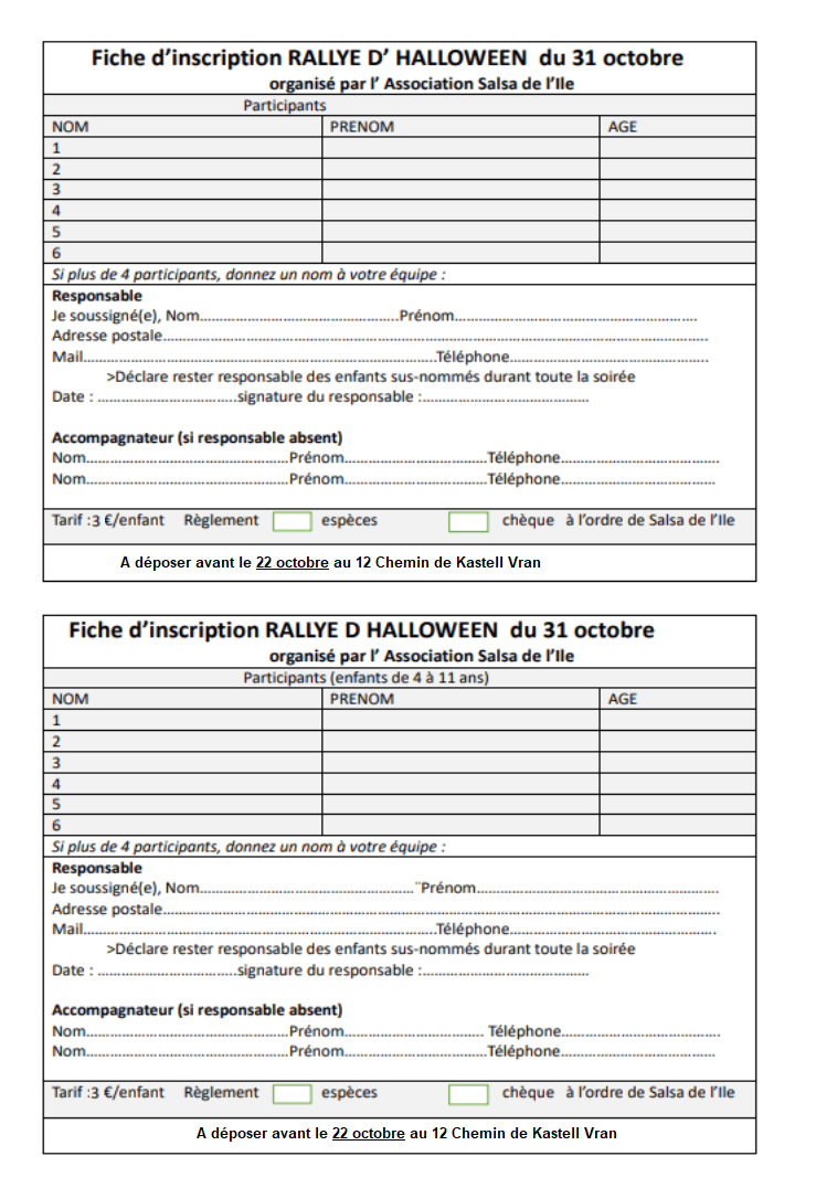 - chaque participant (enfant et accompagnant) doit être déguisé.
